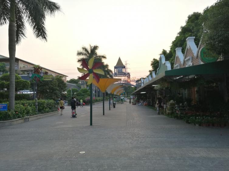 郁金花的香味弥漫在空气中,荷兰风车迎着微风转动着,音乐喷泉广场飘荡着舒缓的音乐,五彩斑斓的花卉在欧式建筑的商场内展卖……人来人往,整个小镇呈现出一片祥和、休闲、舒适的生活场景。