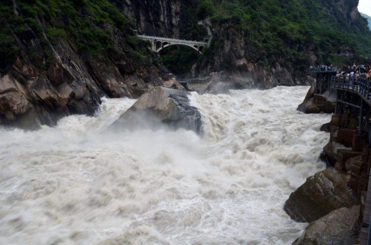 虎跳峡是世界上落差最大的峡谷,位于香格里拉县虎跳峡镇东部,分为上、中、下虎跳三段,全长约20公里。金沙江奔流至此,被玉龙、哈巴两大雪山所挟峙,江面最窄处仅二三十米,加上巨大的落差,江水奔腾汹涌。除了雄奇的自然风光,虎跳峡更是世界知名的徒步胜地,每年慕名而来的户外爱好者络绎不绝。走过中虎跳,下到江边,你才能真正领略到虎跳峡恢宏磅礴的气势。