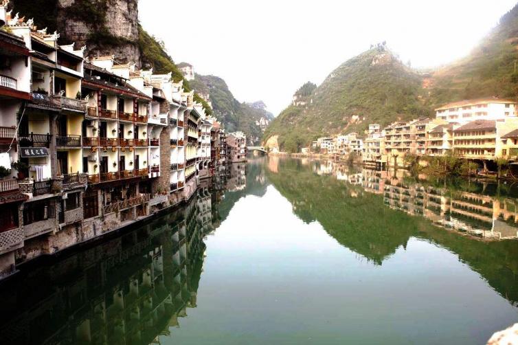 镇远古镇位于黔东南周镇远县,舞阳河畔,河水蜿蜒着以“S”形穿城而过,形成一个类似太极图的样式,故又称八卦古镇。每年夏天,周边的游人纷纷聚集于此,热闹非凡,但夏季一过,则归于平淡。