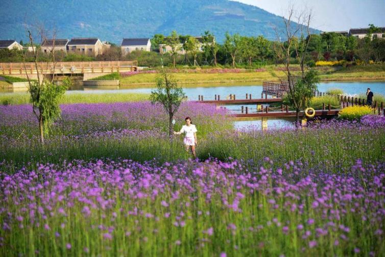 西京湾不只是文艺二字就能形容得尽的,这里的百亩花田遍植马鞭草,一望无垠,紫色花海与太湖遥接辉映,大片的紫,神秘梦幻旖旎,习习湖风将花香送入心田,如童话故事一般浪漫。
