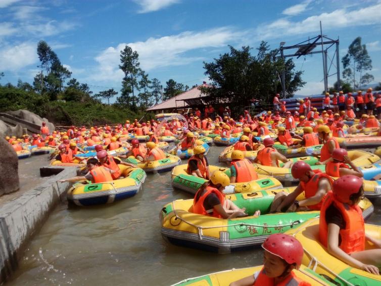 位于台山第二高山—北峰山南麓。猛虎峡漂流河全程长约5公里,漂流时间约99分钟,河道崎岖弯曲、高低起伏,漂流河中奇形怪状的大石组成一道极有观赏性的石林景观。最大落差30多米的斜坡令你惊心动魄、尖叫声不停,体会刺激漂流的极大乐趣,漂流过程中让你领略大自然的风采,植被茂盛。