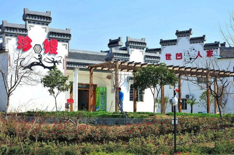 整体风格以徽派建筑为主格调,翠绿的山林下一片白墙灰瓦,成为世凹桃源一道靓丽的风景。石刻、牌楼、亭台、景观长廊配以春桃、夏荷、秋桂、冬梅,成就了“四季有花开、步步有风景”的“牛首第一村”。