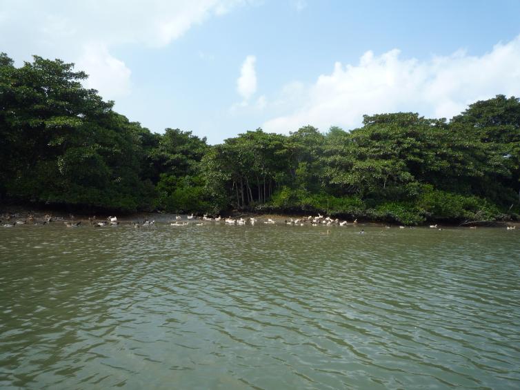 东寨港红树林自然保护区,海岸线总长84公里,面积4000多公顷,跨海口市美兰区演丰镇、三江农场、三江镇,与文昌市的罗豆农场交界,距海口美兰国际机场12公里,距海口市中心约30公里。东寨港红树林自然保护区于1980年1月经广东省人民政府批准建立,此为中国第一个红树林保护区。1986年7月9日经国务院审定晋升为国家级自然保护区。1992年被列入《关于特别是作为水禽栖息地的国际重要湿地公约》组织中的国际重要湿地名录,是中国七个被列入国际重要湿地名录的保护区之一。