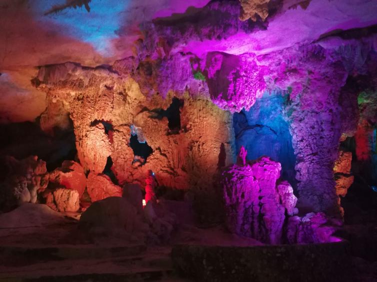 冠岩景区是桂林市新开辟的游览区。位于桂林市南29公里处,漓江东岸的草坪乡,因山形如帝王的紫金冠而得名,冠岩是一个巨型地下河溶洞,全长12公里,发源于桂林东面的海洋山。目前以开发靠近漓江的一段,有地下旱河和旱洞两部分,长约3公里。从桂林乘车经大圩古镇,可直达冠岩景区。也可乘船在游览漓江中途停靠冠岩码头,游览冠岩景区。冠岩,在草坪下游半公里,其外貌像古时的紫金冠,故名冠岩。岩内常年流出甘洌清泉,故又叫甘岩。还因在漆黑洞里,顶上透出微光,所以又叫光岩,民国二十六年李宗仁曾题“光岩”二字刻于洞口。
