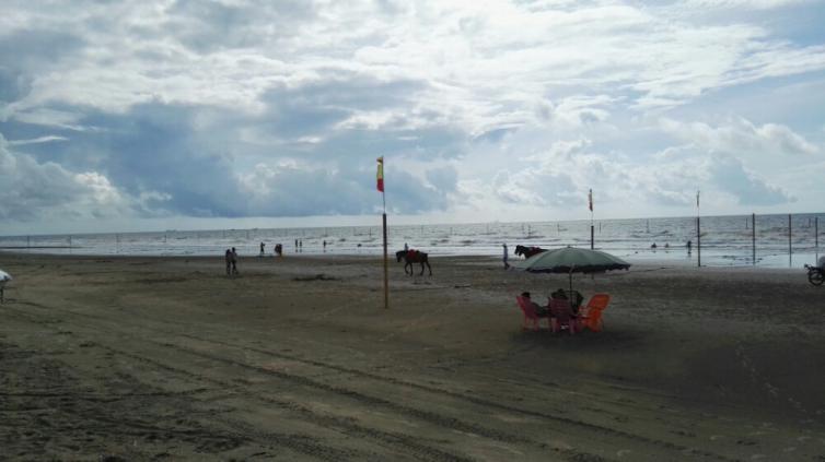 湛江东海岛上的沙滩、蓝天、白云,与其他海岛无异,但沙滩上的日升日落十分壮美。或许是因为长滩所提供的背景视野宽阔的缘故,东海岛适合静看日之轮回。