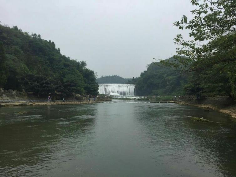 因其瀑顶宽达105米,而成为黄果树瀑布群中,最宽的一个,它的高度约21米。沿着景区木质观景步道,向瀑布方向走去,轰隆隆的水泻声仿佛雷鸣,愈来愈强烈,慢慢的树林掩盖的瀑布,露出了恢弘的气势。颇像宽荧幕的电影,很震撼。