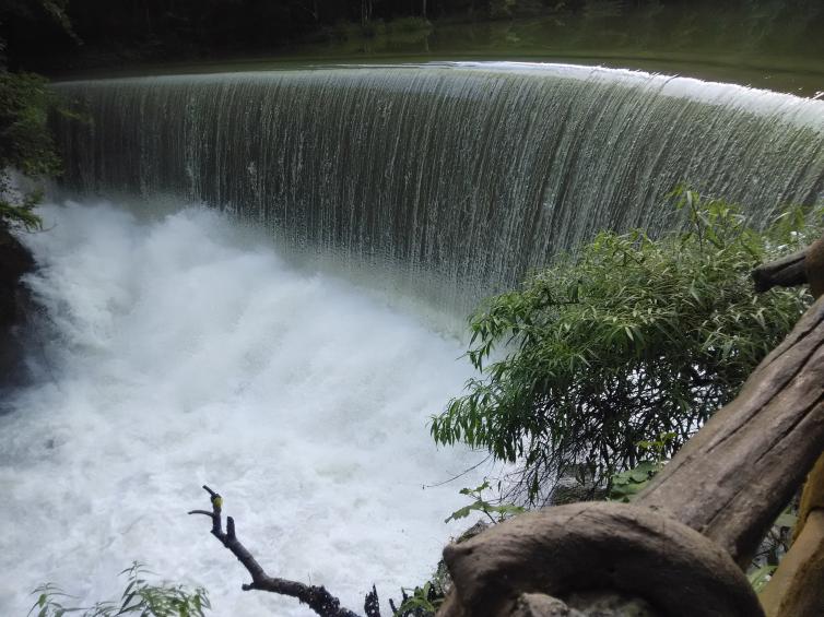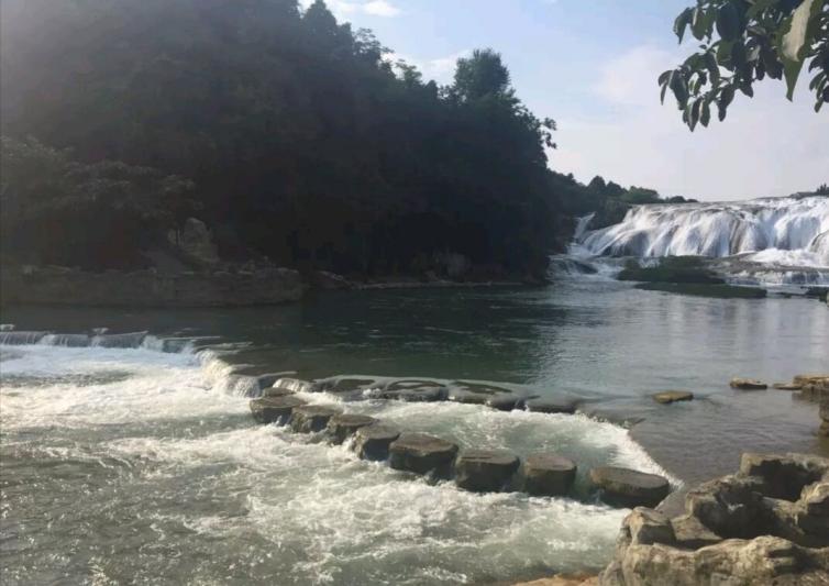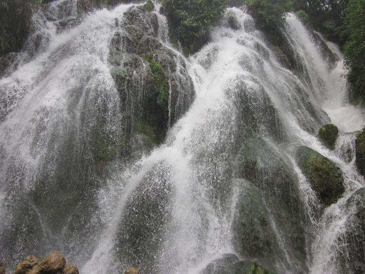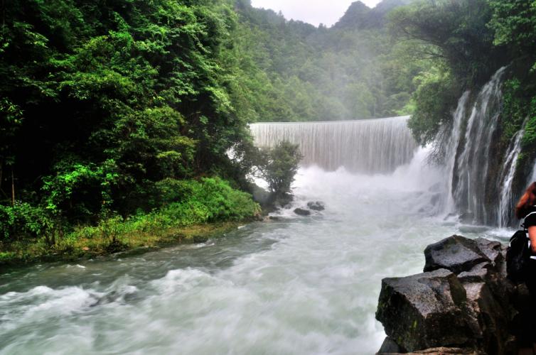 一个好听的名字。像翠绿中划出的片片丝缎。拉雅瀑布腾空喷泻,横向坠落,同响水河纵向错落的68级瀑布构成一幅绝妙的立体交叉瀑布群景观。瀑在路侧,人在瀑下,倍觉酣畅和亲爽。