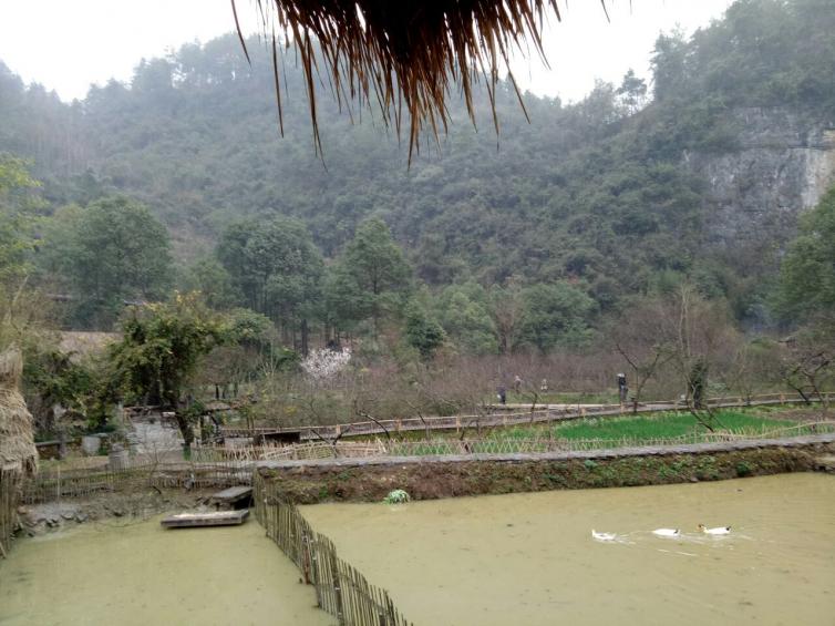 远远看去,几懂秀气复古的房屋,一片郁郁葱葱的树林,数块生机盎然的花圃和纵横其间的阡陌,真是一种山村田园一般的景象。另有索桥,广场,湖泊,农舍,曲型长廊茶园,错落有致的故乡人农家乐及农耕机具操作展出,游客可以亲自感受传统的巴渝民间生活习俗,手工作坊的生产工艺过程,十分有趣。
