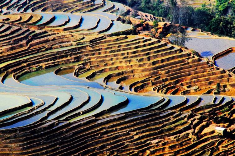 元阳梯田:秋季的元阳梯田变得金灿灿,那是沉甸甸的丰收的颜色,规模宏大,气势磅礴。