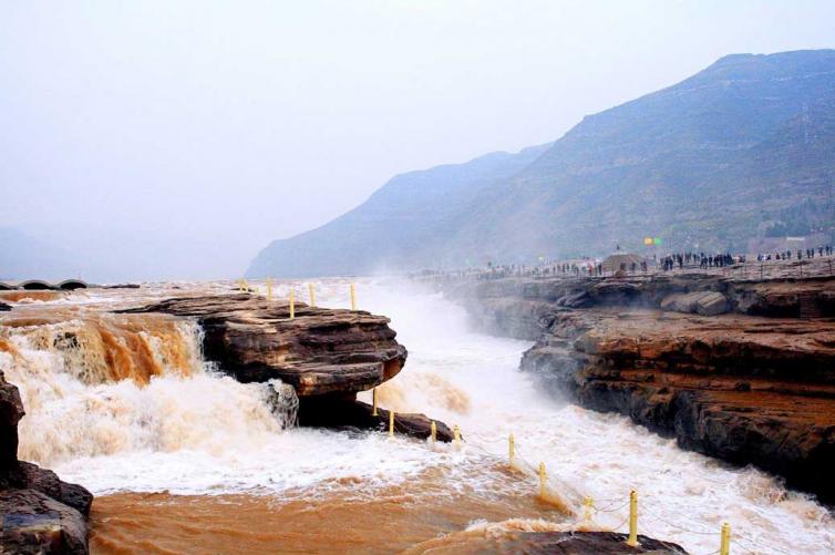 壶口瀑布:壶口瀑布如一条黄色的巨龙腾空飞起,气势磅礴,场面壮观。