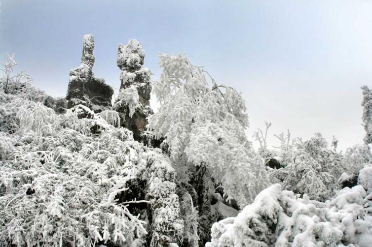 每年12月底至来年2月,华蓥山上飞雪厚积,披覆嶙峋怪石,银装素裹。雪花飞舞,如絮如棉,眼前一片“银色世界雪皑皑,青山绿水依旧在”。你可以在这里赏雪、玩雪,打雪仗、堆雪人、做雪雕。