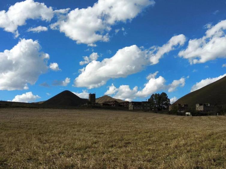 夏季山头开满了紫色、粉色、蓝色、黄色、白色的野花,坐在芬芳的草地上可以俯瞰到坛城的全貌。佛塔、寺庙、经幡、河流及伸向远处的小径与坛城一起,共同构建成了一个具有独特自然与人文风格的藏寨。