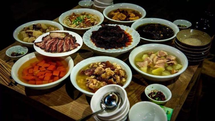 这里是吃货的天堂!品“庖汤涎”、饮布依“八大碗”、尝新鲜野菜等特色菜肴。这道传统布依美食以“三盘四碟八大碗”而远近闻名,也使得这里享有了“庖汤第一村”的美誉。