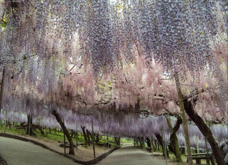 华亭人家内的紫藤均是由日本品种引进,并由紫藤之父藤本先生指导精心栽培、修剪而成。现在,紫色,粉色,白色在枝头交相辉映,如同一幅美丽的画卷,叫人赏心悦目。