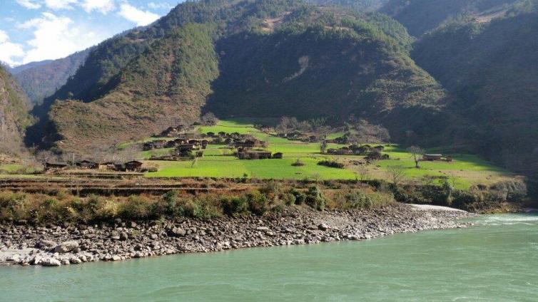 秋那桶的北面是西藏察隅县的察瓦龙乡,由一条弯弯曲曲的茶马古道把两地紧紧相连,这些似乎嵌在山崖缝隙里的古道,悠远无声。在这里,听滔滔江水,寻远方美景,美不胜收。走出大自然鬼斧神工劈出的石门关就可看到江对面怒族同胞就地取材用石板当瓦木板当砖砌成的木楞房,在蓝天白云底下,青山绿水的环抱中一切都显得是那么地自然淳朴。