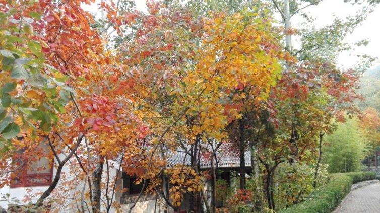 樱园据说从前是日本人居住的地方,顶上是一处不错的制高点,建筑风格是武大特有的琉璃风格。从那里四周眺望,珞珈山秋色尽收眼底,虽然谈不上"万山红遍",但绝对可以说"层林尽染"。