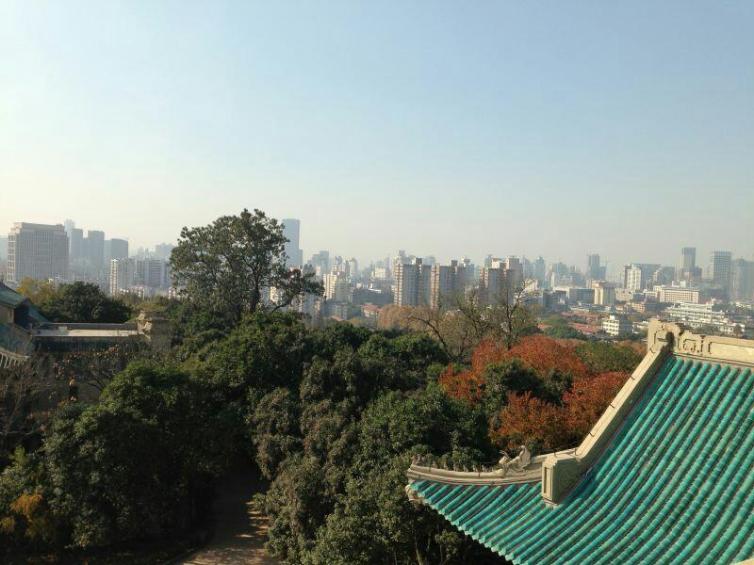 比起樱花的可爱,秋天的武大多了份寂寥,登上樱顶,不是诗人却心里装着个诗人,俯瞰整座珞珈山每一处都是景,高大的梧桐、满地的落叶、金黄的银杏随风飘落,阳光透过树叶与雾霾的间隙照射在大地,背靠历史悠久的武大老图书馆。清风徐徐,有种沧桑的浪漫……