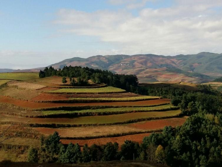 每年秋冬时节,一部分红土地翻根待种,另一部分红土地已经种上绿绿的青稞或小麦和其他农作物,远远看去,就像上天涂抹的色块,色彩绚丽斑斓。红土壤和庄稼,织成一幅幅色彩浓烈的画卷。