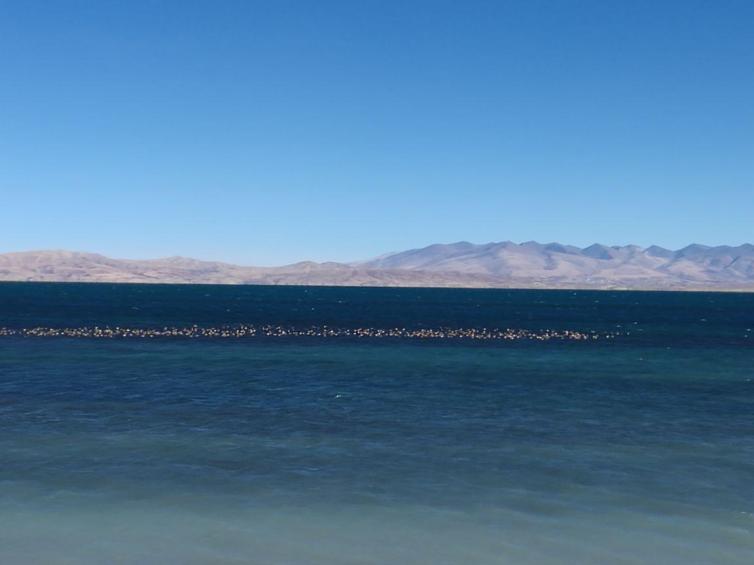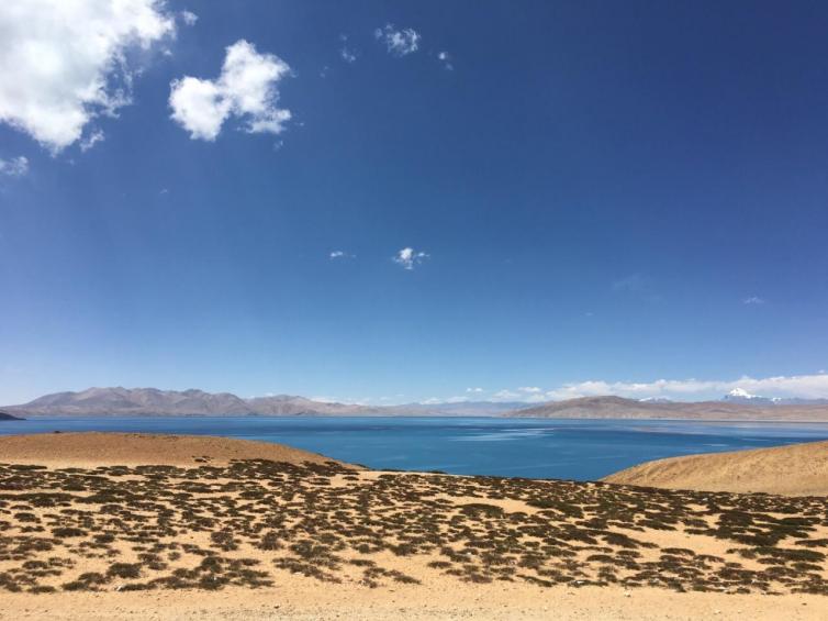 有人是这般形容在阿里遇见当惹雍错时的场景:“阿里行程最惊艳的湖:当惹雍错。翻过了一个山口,就看到这块一眼都望不到边的蓝色宝石突然横隔在眼前了。