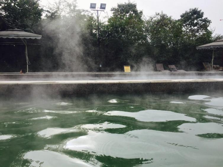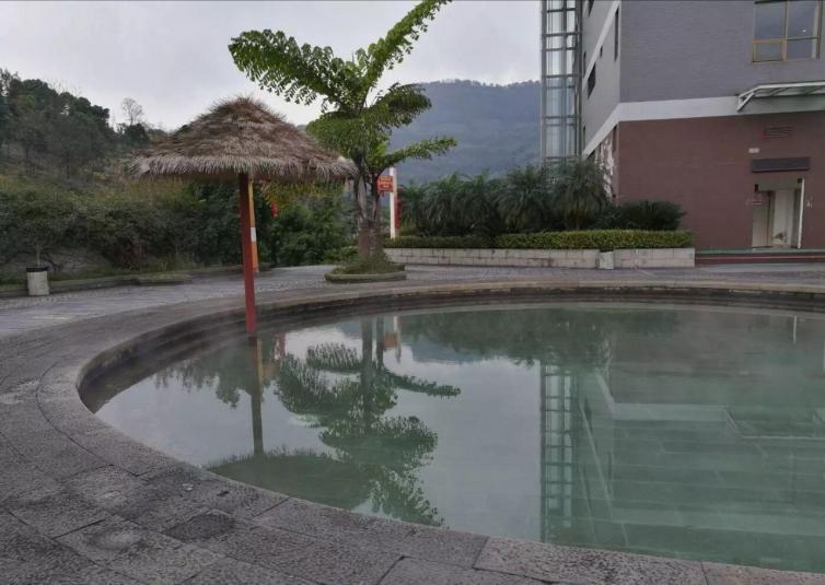 温泉位于罗浮山半山腰,山上常年水汽升腾,云雾缭绕,山势陡峭,具有喀斯特地貌特征。