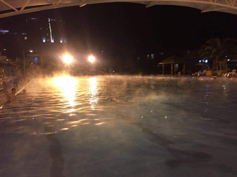其海拔1580 米,是国内高山温泉中海拔最低、品质最佳的冰山温泉,水质无色透明,富含30多种宏、微量元素。在冰天雪地里,浸润在温泉中,周围是一派银装素裹的景象,让人心旷神怡。