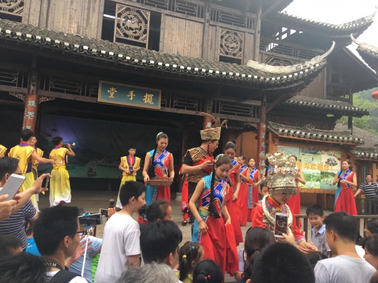 山歌、南曲和跳丧鼓被称之为土家人的“三件宝”。 花鼓子舞、茅古斯舞、跳丧鼓、摆手舞等堪称世界首创。摆手舞是土家族最有影响的大型舞蹈,分为“大摆手”和“小摆手”,整个活动带有浓烈的祭祀色彩和祖先崇拜痕迹。在这里,可以跟随土家人一起自由歌唱。农历正月,走亲访友结束,带上一家妻儿老小,来锦里沟跟这群热情的土家人民载歌载舞吧,过一个别样的春节!
