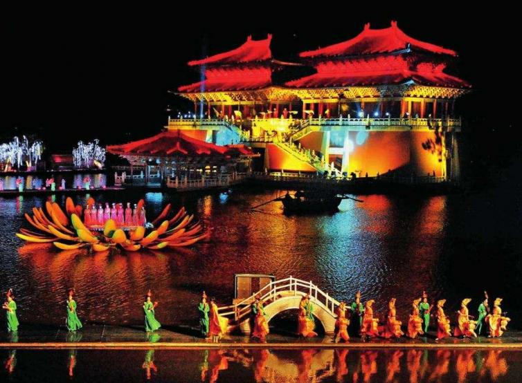 大宋·东京梦华是《清明上河图》和《东京梦华录》的历史再现。它运用《虞美人》《醉东风》《蝶恋花》《满江红》等八首耳熟能详的经典宋词及其意境,勾勒出北宋都城东京的历史画面。在张择端那幅长达5米多的长卷上,亭台楼阁,勾栏瓦肆,漕运虹桥,城阙通衢,勾勒出一幅盛世景象。在宋都繁华的亲历者和知情人——孟元老的《东京梦华录》中,如此描述:“避地江左,情绪牢落,渐入桑榆。暗想当年,节物风流,人情和美,但成怅恨。近与亲戚会面,谈及曩昔,后生往往妄生不然。仆恐浸久,论其风俗者,失于事实诚为可惜,谨省记编次成集,庶几开卷得睹当时之盛”。真切地记录了当年东京的风俗民情。