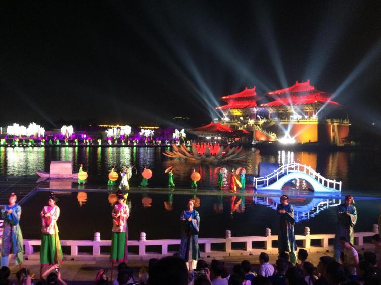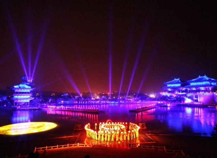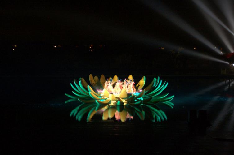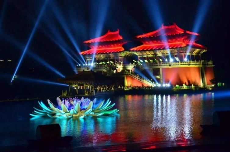 晶莹菊花,五彩霞光,歌舞声乐,栈桥自移,神奇之景。