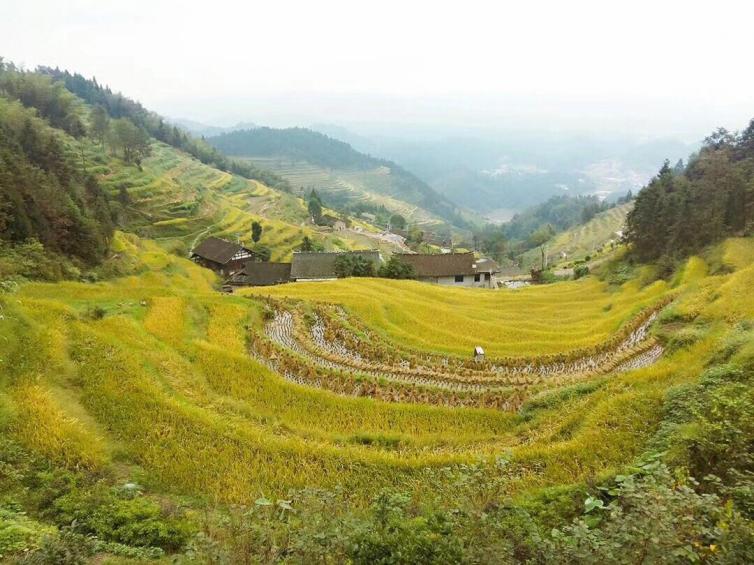 层层叠叠直上山腰的梯田,一年四时景色不相同。秋高气爽时节,水稻金黄,稻浪翻滚,把紫鹊界变成了一幅金黄的画卷,色彩饱满,线条分明。秋姑娘的裙摆,在紫鹊界梯田上空肆意飞扬,这是收获的颜色,这是辛劳的回报,这是喜悦的气息。