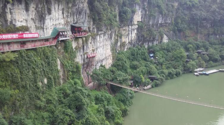 景区主要由三游洞、至喜亭、楚塞楼、古军垒遗址、张飞擂鼓台、陆游泉等景点组成,后又新增了巴楚乐宫、世界华人国家印章刻石园、中半震旦角石园等新的景观。各位想象过在悬崖上吃饭吗?那滋味真的说不清是惊吓还是惊喜呢,到这儿,你着实可以尝试一番。