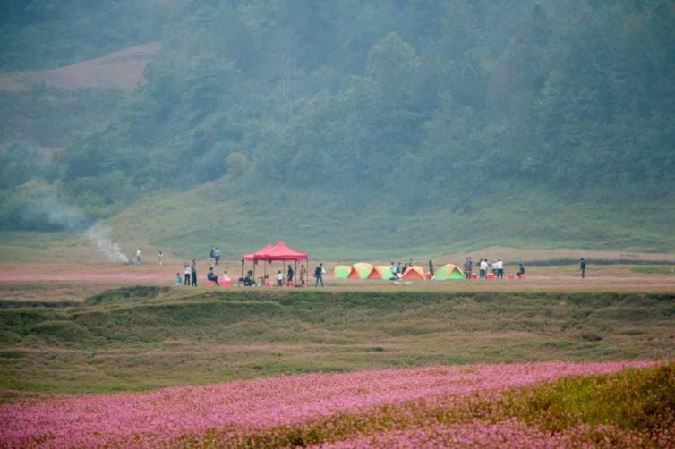 该地位于恩施市白杨镇熊家岩村,沿国道318向东行,桥头坝下面。这里被称作湖北的普罗旺斯,也许在大部分人眼中,它是青青的草坪,蜿蜒的河流…茂密的草地上有一种洋红色的无名小花尽情地绽放,给草地盖上了一层柔软的淡红色地毯,整个草地春意盎然,生机勃勃,毫无秋意之感,形成了一种奇特的秋之春韵的美景。