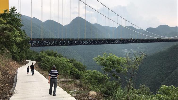 其实拥有国内外“第一高悬索桥”之美誉的四渡河大桥,从诞生之际就已受到多方关注与仰望。虽然它的最高纪录已经被刷新了,但它仍然是纪录的创造者!四渡河大桥是世界首座跨度达900米以上的山区特大悬索桥,塔顶至峡谷谷底高差达650米,桥面距谷底560米,相当于200层楼高。遇到云雾绕山的时候,便如同置身仙境。