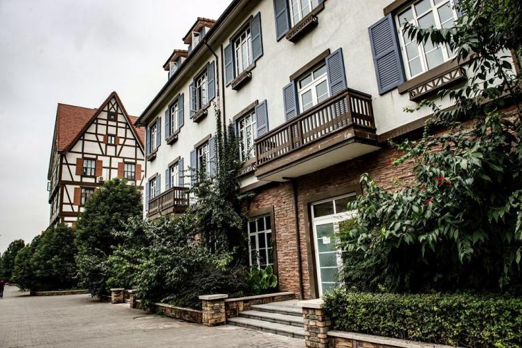 英伦风的建筑,园林般的景色,这里更像是一个花园!据说创始人在修建学校时,是打算学校如果开不下去,就把这里做一个农家乐。呵呵,现在这里已经是一所很具规模的职业学校了。看不出来吧?这里是以美发专业著称的四川国际标榜职业学院,除了洗剪吹专业之外还有如家具制作,服装设计,刺绣手工艺等专业。
