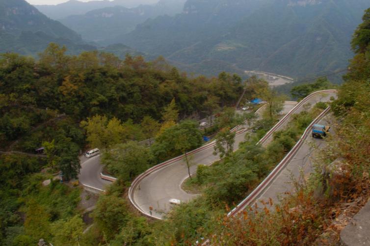 十三道急弯这是一条耗费了很多人力物力,甚至牺牲了200多条人命才修筑好的公路。整条公路俯瞰就像是水平的,上下重叠的路面,你要转折十三道急弯才能到达坡顶。