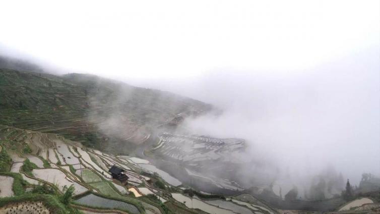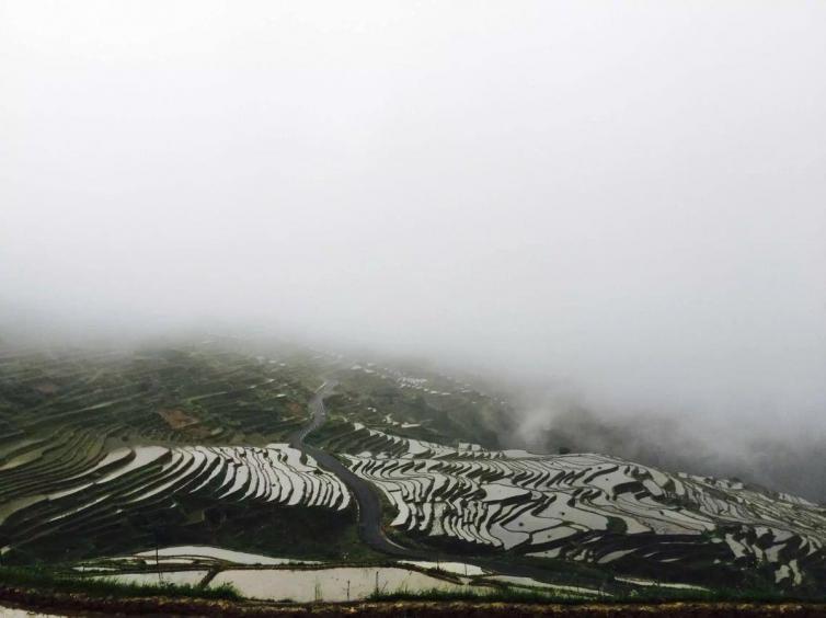 月亮山腹地最性感的曲线或许,你看过目光所及之处都是金黄一片的加榜梯田,但也愿你见过它灌溉时节如仙境般的模样,这里可是中国最好梯田之一。