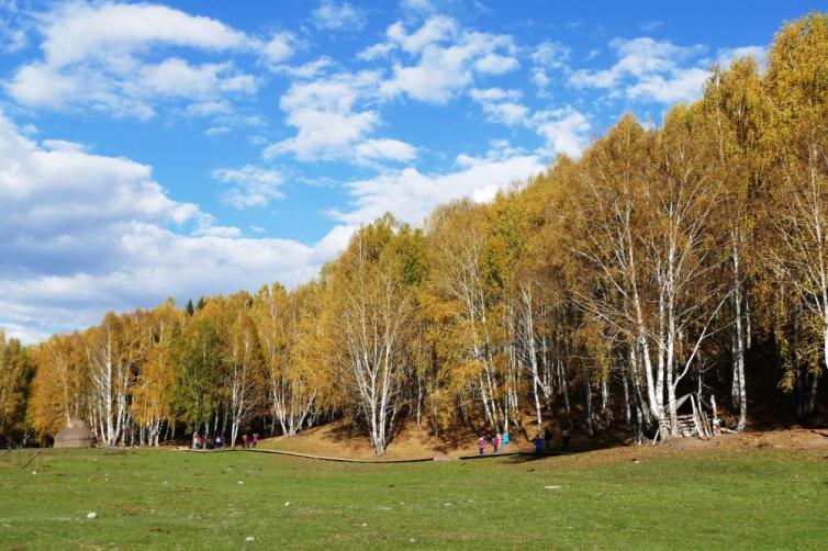 位于喀纳斯河与禾木河交汇区的山间断陷盆地中,禾木草原阴坡绿草满坡,繁花似锦,芳香四溢,蜜蜂在采花酿蜜,牛羊满山遍野觅食撒欢,一派迷人的广袤草原景色。喀那斯区域最美的秋色在禾木,层林浸染,绚丽多彩,是一处典型的原始自然生态风光。