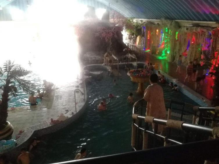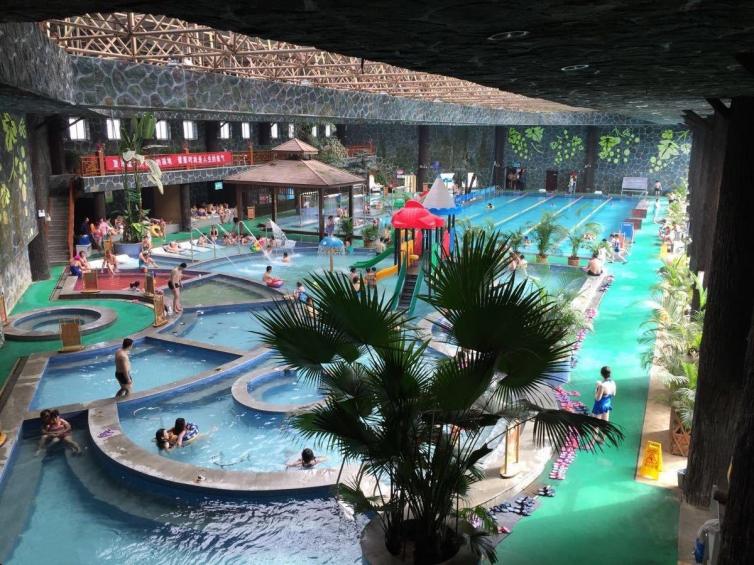 温泉宫内园林叠翠、鸟语花香,翠竹湿萌之中温泉泡池20余个,水上娱乐项目和豪华健身戏水设施应有尽有。