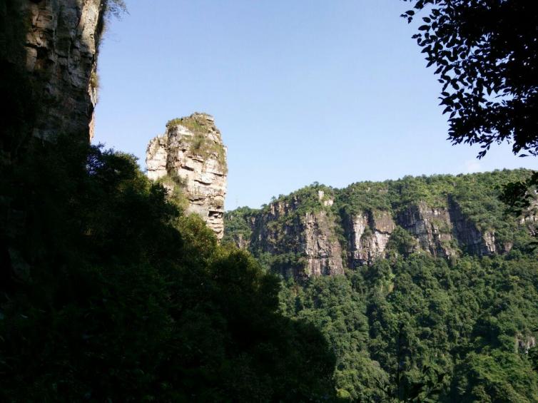 有一条坡度达50度斜角的1386级石阶的“通天梯”可达谷底。谷沟壑纵横,奇峰林立,古木参天,构成一幅巧夺天工的山水画廊,是探险旅游胜地。
