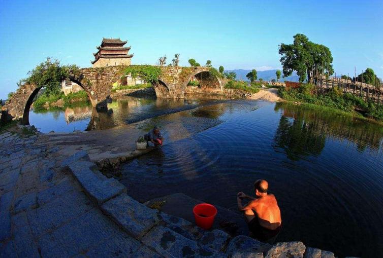 钻进挤女巷,走过只容一人而过的小巷道是整个古村最窄的一条巷道,不妨边走边抬头看看两边高耸的房壁和头顶的蓝天;信步走上步瀛桥,听脚下流水发出的声响,眼着年古代的建筑,感叹时代的进步和社会的变化。步瀛桥是湖南省到目前为止发现的唯一座宋代古桥;