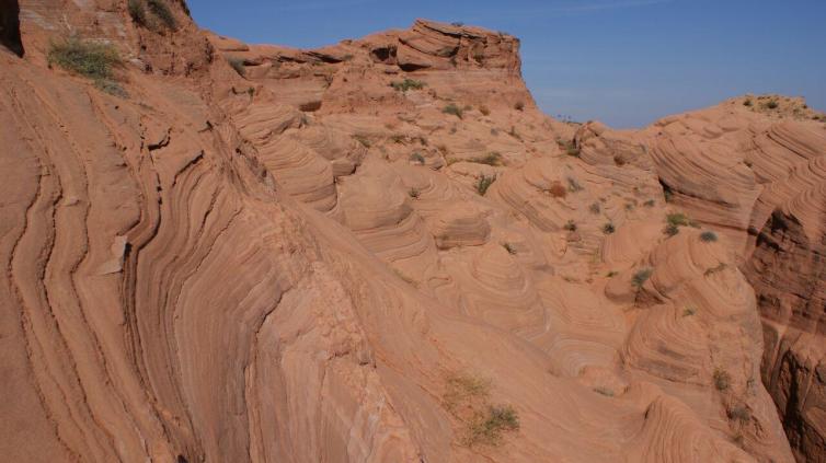 对于波浪谷奇观,小编自认为最大的震撼就是,它美丽的线条,彰显着岁月的痕迹,记录着时光的打磨。那一层层七彩的丹霞,近看是不同质地不同色彩的沙石,远看像大自然为这里编织的新衣,关于波浪谷的观赏,建议最好是讲解员一边讲解一边观赏。这里的风景最大的特色是关于它的形成,只有听着它的故事才会体会到它的神奇,龙州丹霞景区就是中国的波浪谷,红色石头像被水冲刷过的很久,仿佛也成了流水的样子顺着风势而下,同是丹霞却比张掖丹霞多了几分柔美。