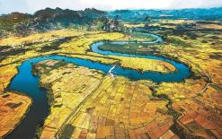 悠悠红水河源远流长,万年长河突破崇山峻岭流淌在南国的峰丛峰林之间,两岸奇山延绵26多公里,保留原红水河道和多级河床之形态,一年四季可通航、漂流。两级河床两幅画,层次分明,错落有致,成为天下绝滩,更有多处沙洲,沙洁净而石玲珑,草青翠而竹环抱。河道曲折,有“八弯八滩”,岸上滩边草木生菲,悬崖险峻、秀美,河滩乱石嶙峋,千奇百怪。如神似仙,若禽似兽,绝壁上怪画斑驳,疑是九天鬼符。为此,被人们称为奇滩怪峡。