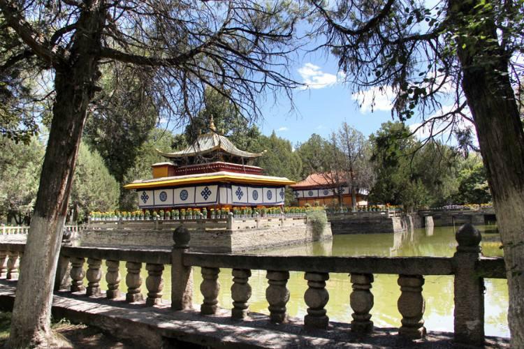 罗布林卡俗称拉萨的颐和园,位于拉萨的西郊,罗布林卡意为宝贝园林。 罗布林卡全园分为三个区:东部宫前区包括入口和威镇三界阁之前的前园;中部为核心部分的宫殿区;西区是以自然丛林野趣为特色的金色林卡。