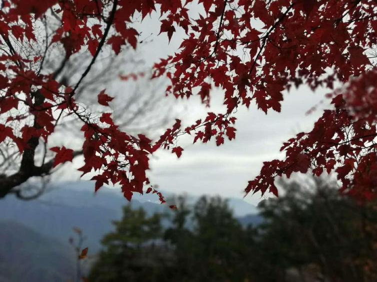 枫树、海棠、珙桐……那些长在苔痕深深的山岩边的树,未经人工修饰,此时正顶着一树红艳,迎风招展仿佛火苗跳动。