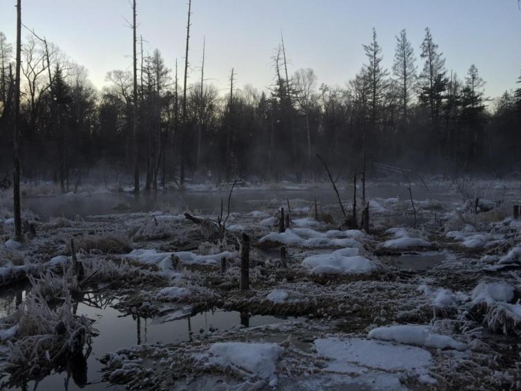 魔界一带多枯树,又常年不冻。当气温低于零下20度时就会升腾出雾凇来妆点河中的枯树。火树银花,一切的一切都笼于薄雾中若隐若现,让人恍若置身于远古的魔幻世界中。