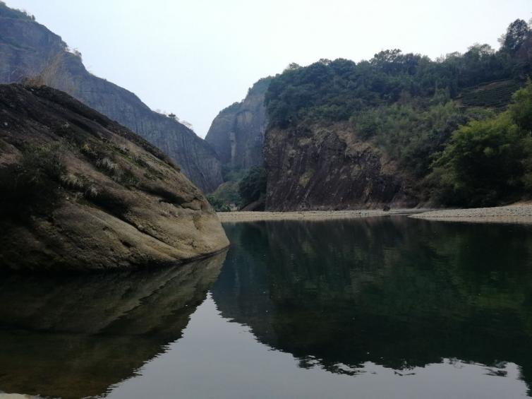 冬季是银装素裹的,是灰白的清冷色调。但武夷山的冬天,满眼依旧是春绿和秋红。在这样的季节里,天蓝得很纯净,水绿得很晶莹。