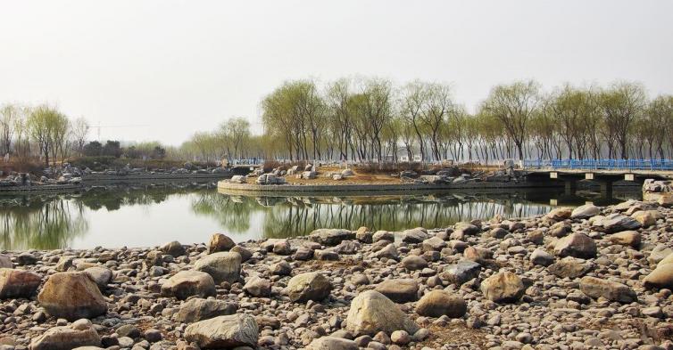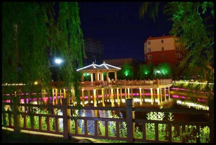 碧波荡舟——位于前进街桥、红星街桥两座景观桥之间,绿化面积20万平方米;两岸种植悬铃木、香花槐、水杉、美人蕉等乔灌木:景观林地与村庄果林交织,突出人与自然和谐共处。