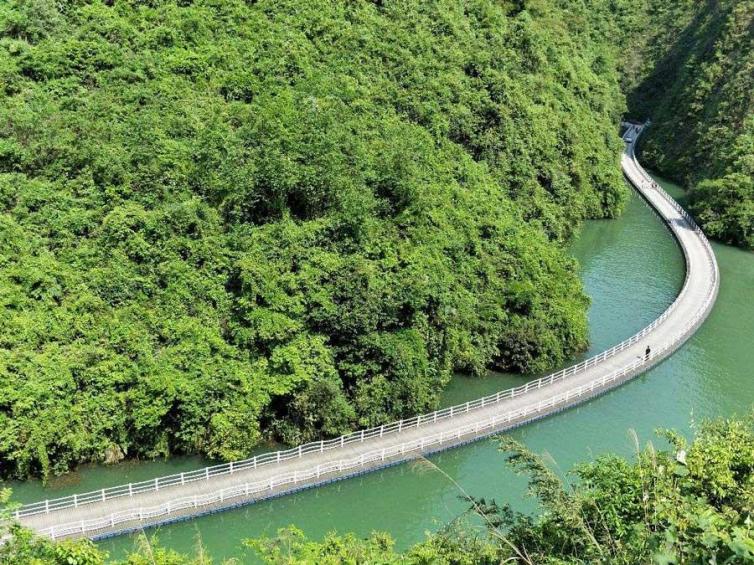 该漂浮式“水上栈道”长约500米,顺着蜿蜒的河道建设而成,让人行走在青山绿水间,感受土苗山乡大自然的魅力。近距离走进狮子关,走进大峡谷。一座木质的板桥,走在木板桥上,欣赏着两边的水流,就像徜徉在一个别样的世界。