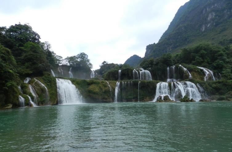 瀑布三级跌落,最大宽度200多米,纵深60多米,落差70余米, 是亚洲第一、世界第四大跨国瀑布。沿着瀑布旁的旅游步道走大约十分钟,就是著名的53号界碑了。这里已辟为中越边贸市场,不少的边民在这进行各种产品的贸易。