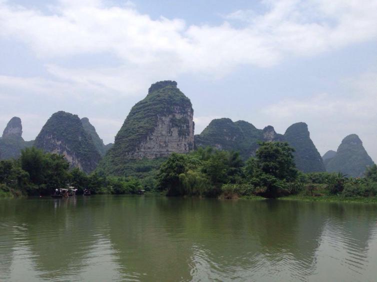 从德天瀑布出发,前往电视剧“花千骨”的其中一个拍摄地:明仕田园风景区,路程近三十公里,驾车需时一小时。明仕田园山水之间皆是稻田,眼光所及皆是绿色。在绿色的之中,到处点缀着情态各异的山峰。在山峰点缀下的绿色之间,静静地流淌着弯弯曲曲的清清小河,仿佛是翡翠的碧玉。