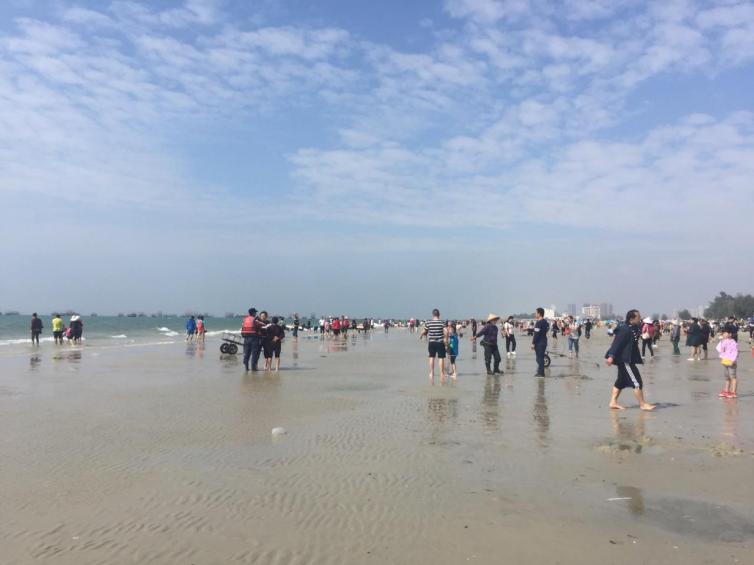 北海银滩面积超过大连、烟台、青岛、厦门和北戴河海滨浴场沙滩的总和,而平均坡度仅为0.05。沙滩均由高品位的石英砂堆积而成,在阳光的照射下,洁白、细腻的沙滩会泛出银光,故称银滩,北海银滩以其“滩长平、沙细白、水温净、浪柔软、无鲨鱼”等特点,而被称为“中国第一滩”。